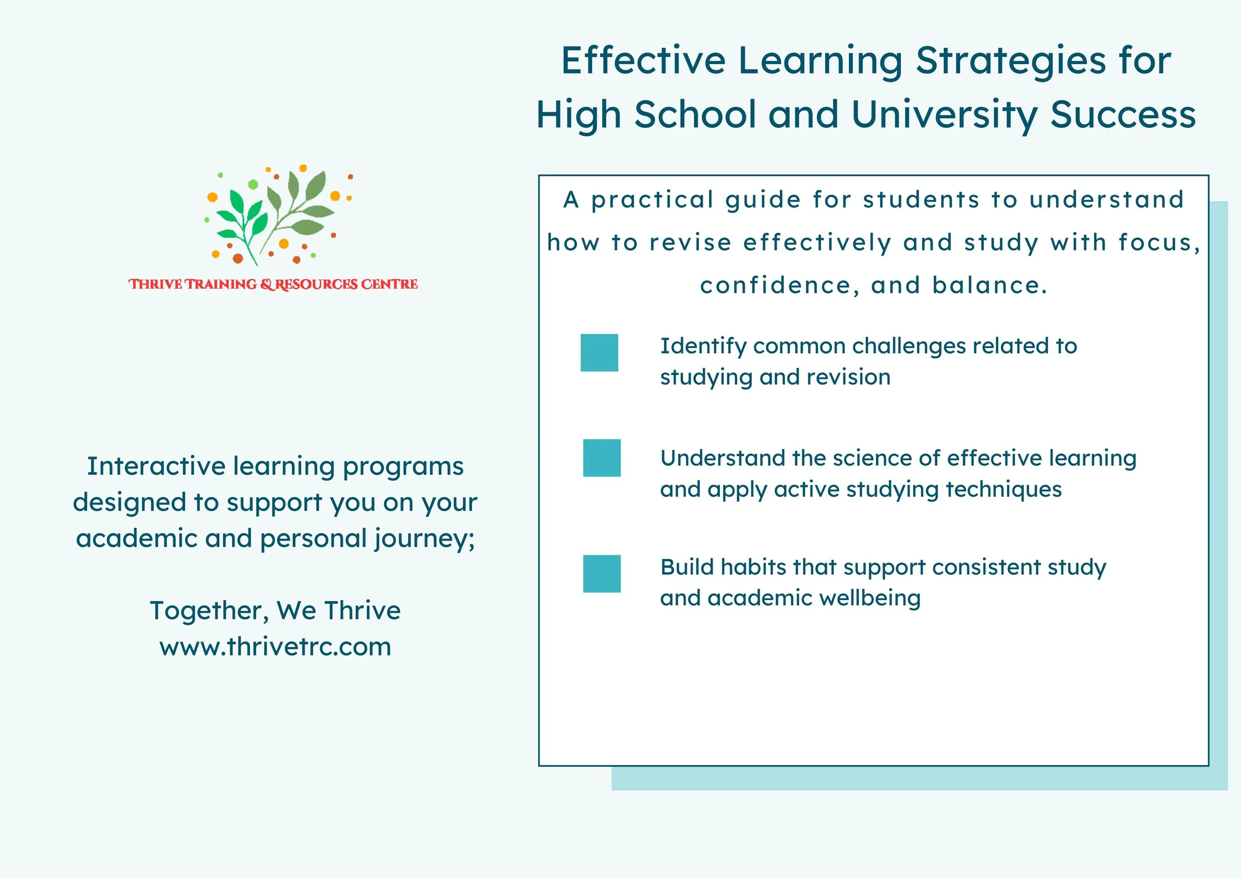 At Thrive TRC, we recognise that every student is on a unique path, whether in high school or university. Academic life can bring a mix of opportunities, challenges, and expectations, and each stage comes with its own experiences.